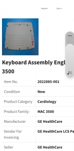 PN:2022885-001for Keyboard Assembly Engl GE MAC 3500 NEW original